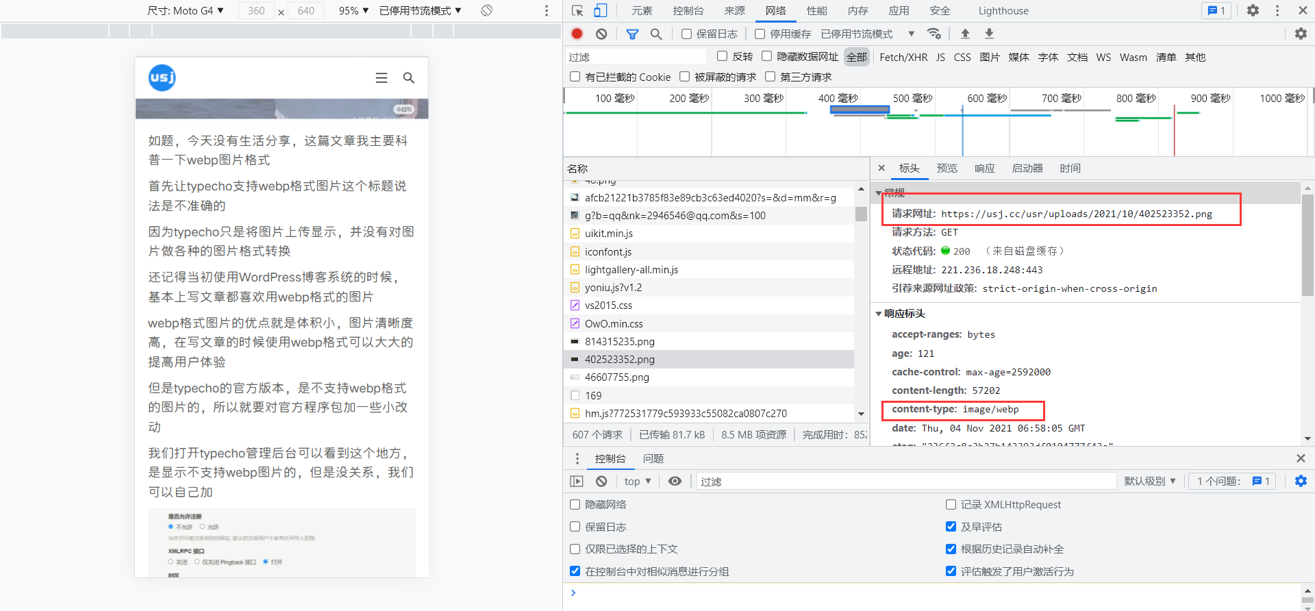 博客图片的地址是png格式,但是文件类型已经被转换了webp格式,即image/webp
