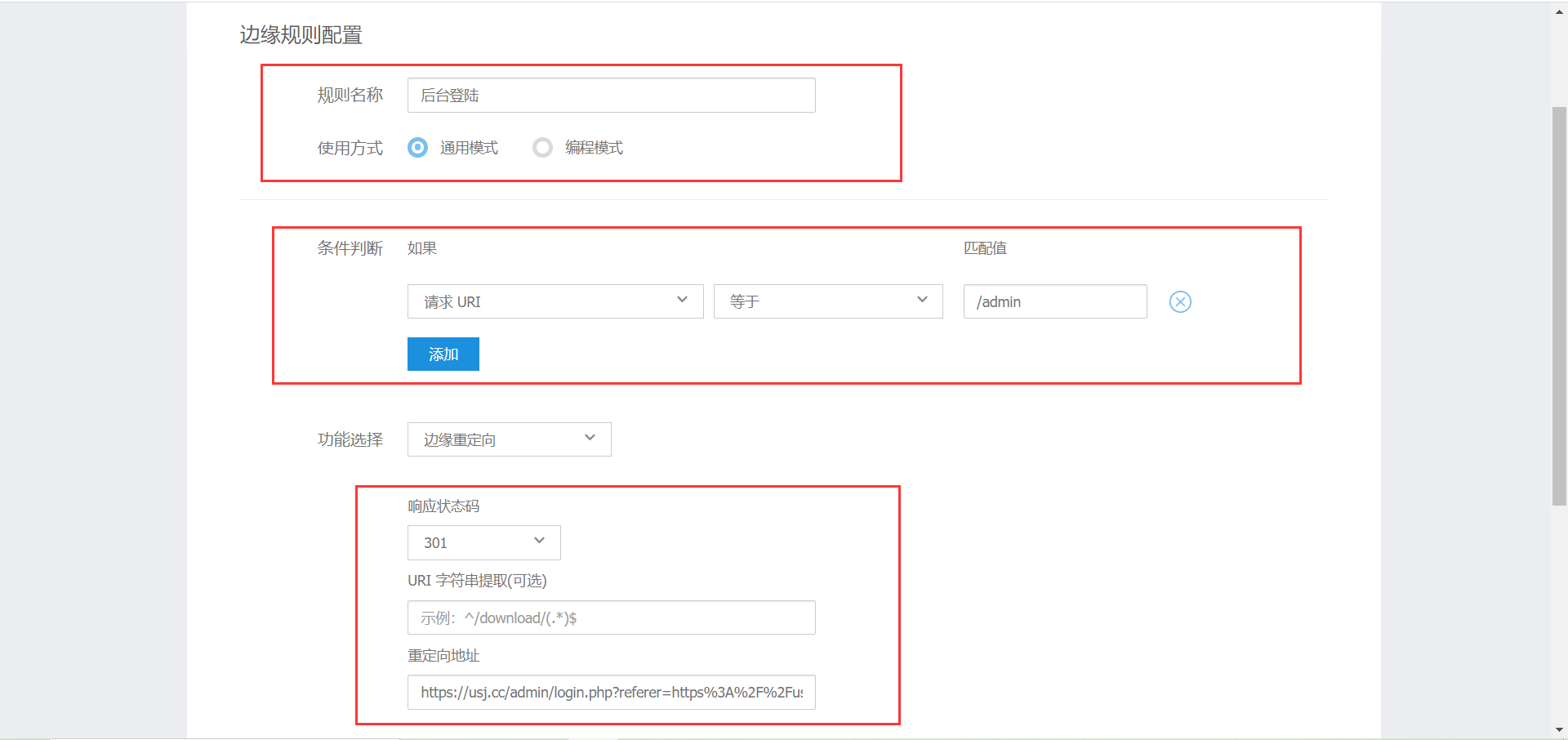 我们还需要设置一下边缘规则,因为Typecho需要携带referer参数才可以登陆后台