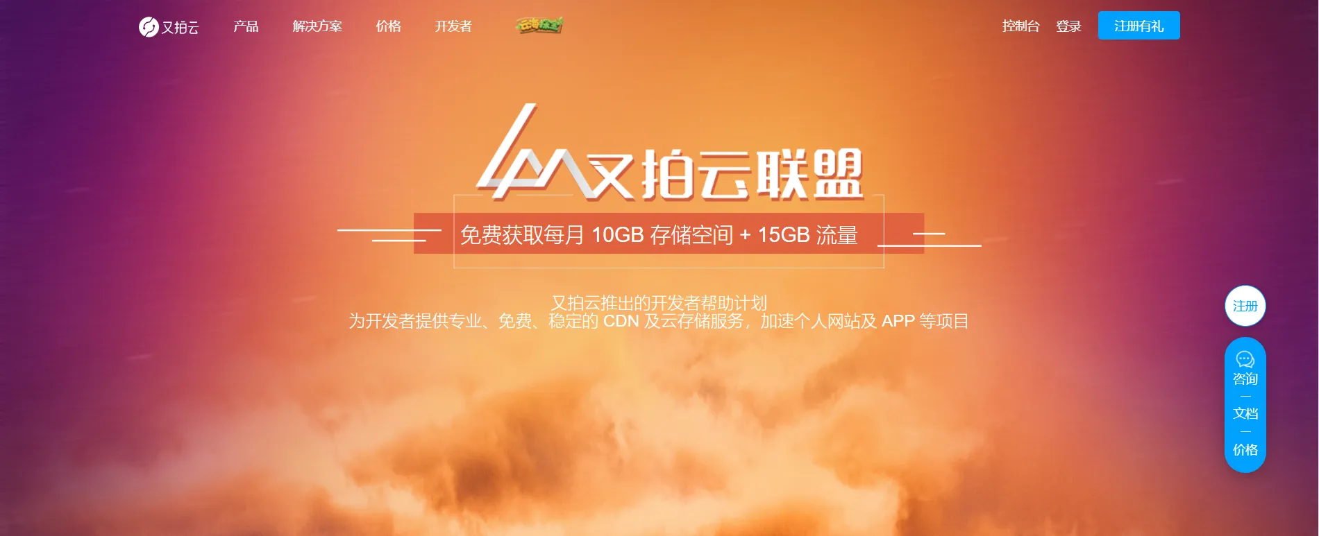 这个又拍云联盟确实不赖,加入又拍云联盟每个月免费获取每月 10GB 存储空间 + 15GB 流量,对于我们这种小访问的博客,只能说在合适不过了