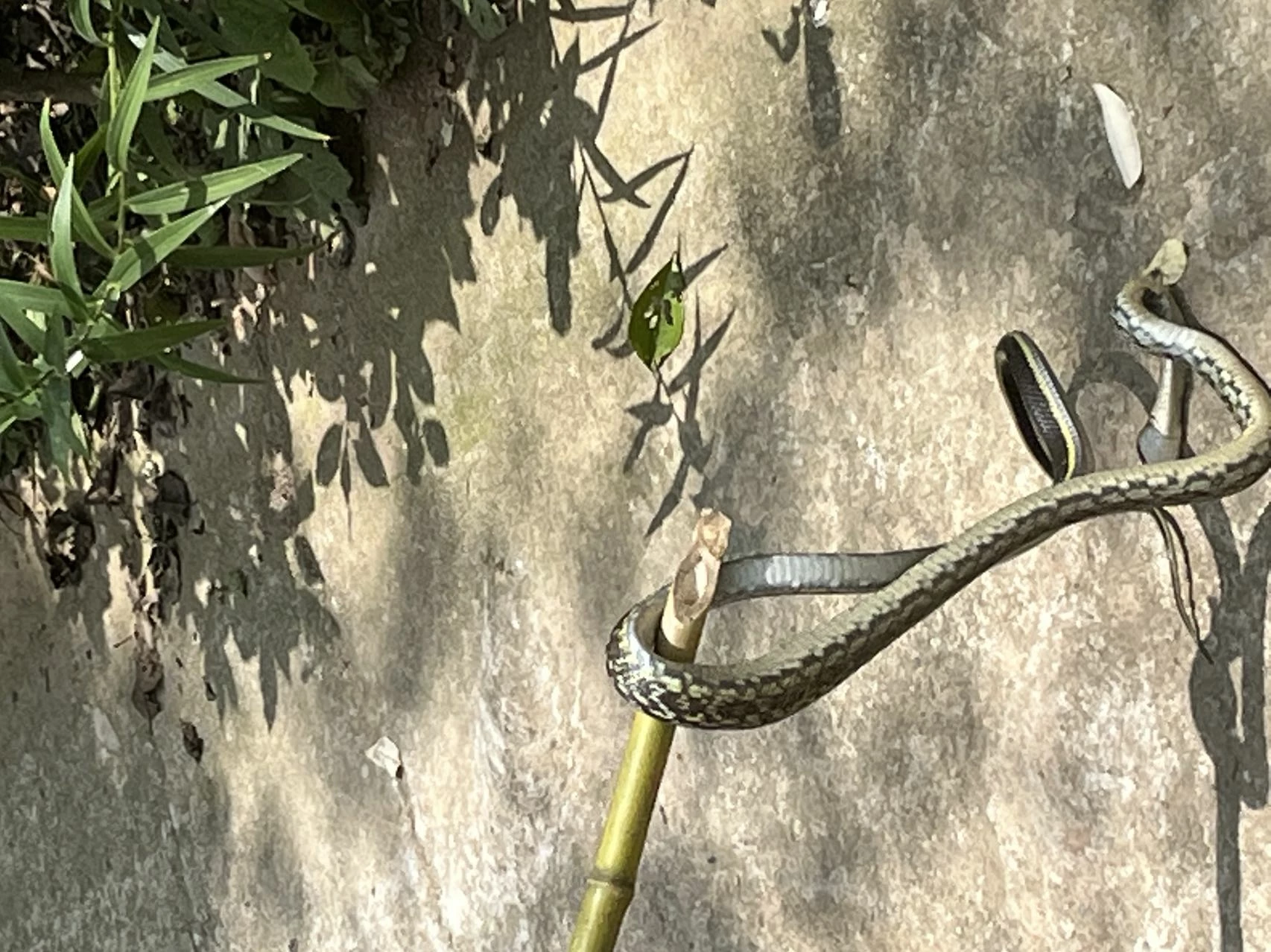 定睛一看,tnnd,是一条蛇,达咩,给我吓得不轻,这个蛇的学名叫做菜花蛇,属于蛇王,属于无毒类型