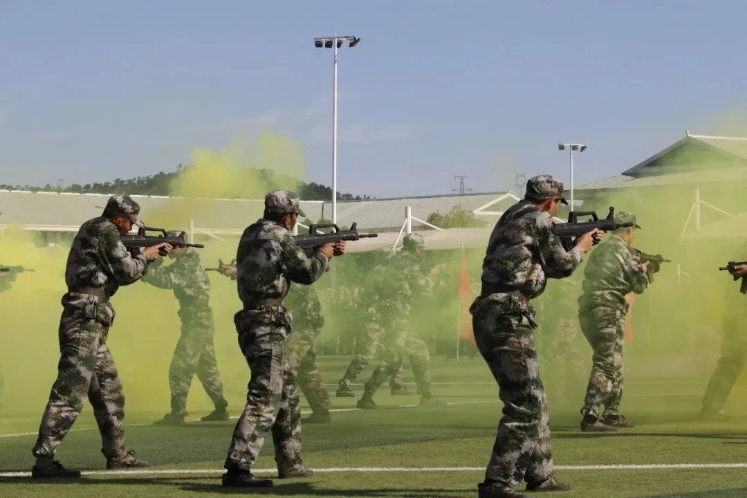 不得不说现在军训真的是越来越好玩了,各种迷彩,军械装备