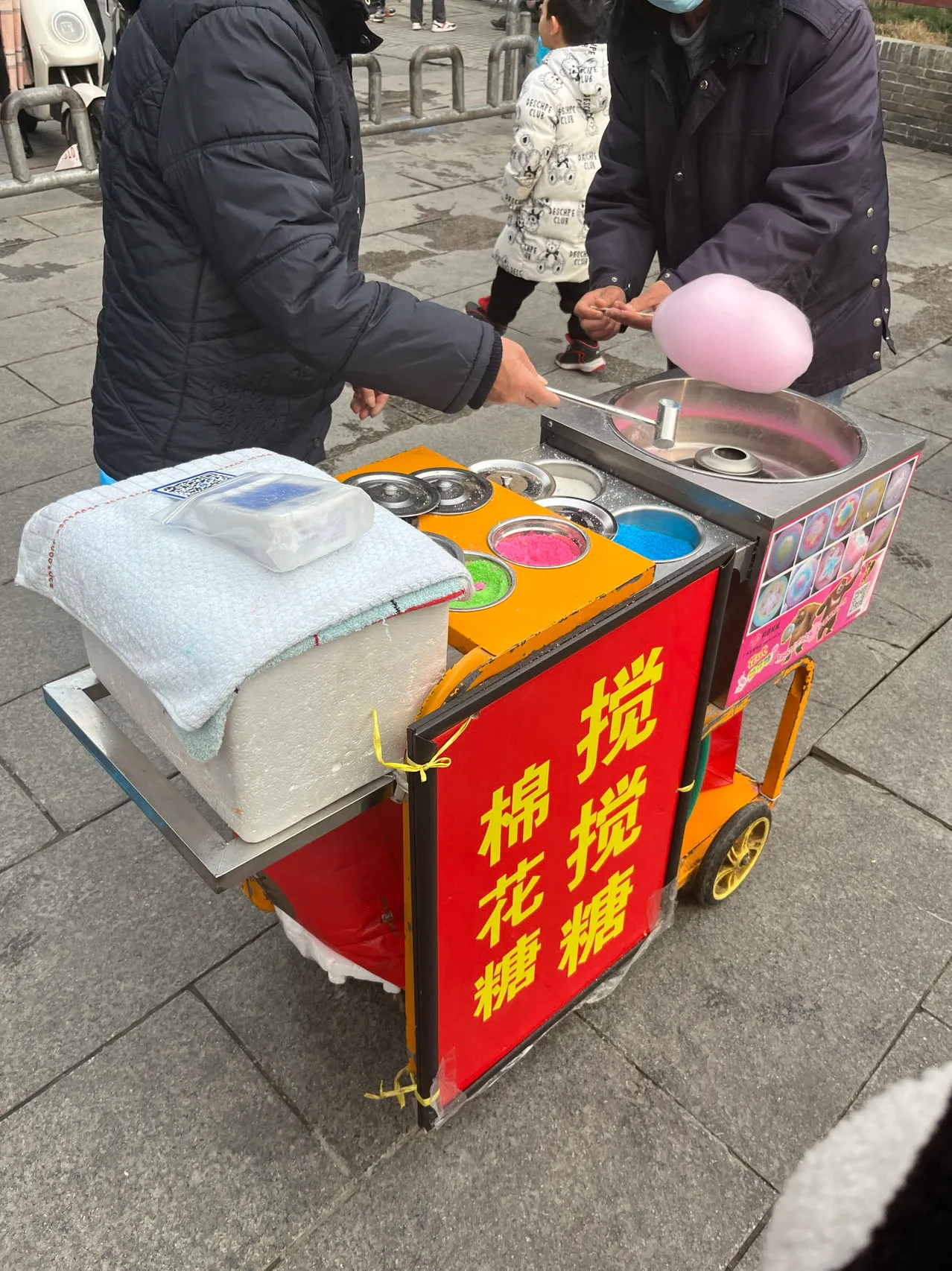 还有儿时回忆,棉花糖机,是一对老夫妻摆的摊